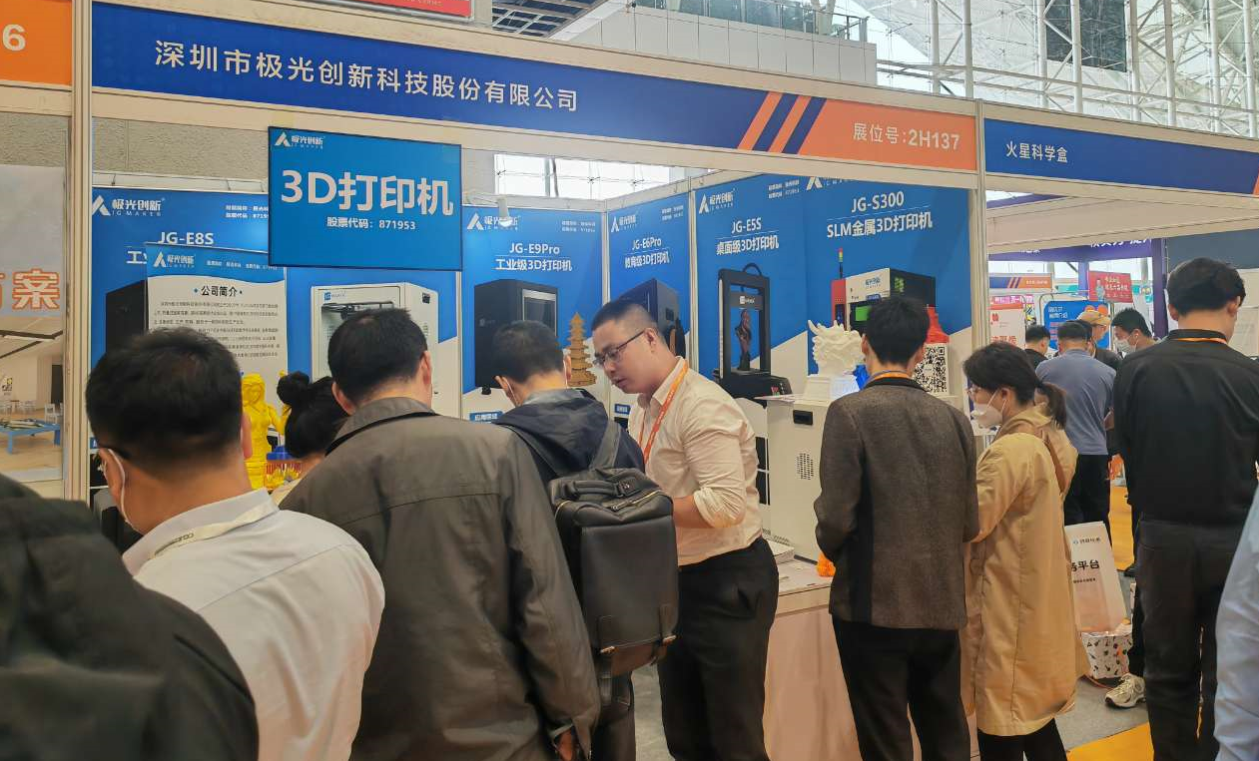 在此次展會上,極光創新攜教育級3D打印產品“JG-E8L”、JG-E6Pro、 JG-E5S 和一系列具有代表性的3D教育產品模型亮相CCE素博會2號館H137展位,為教育行業帶來了一場奇妙震撼的科技盛宴。
