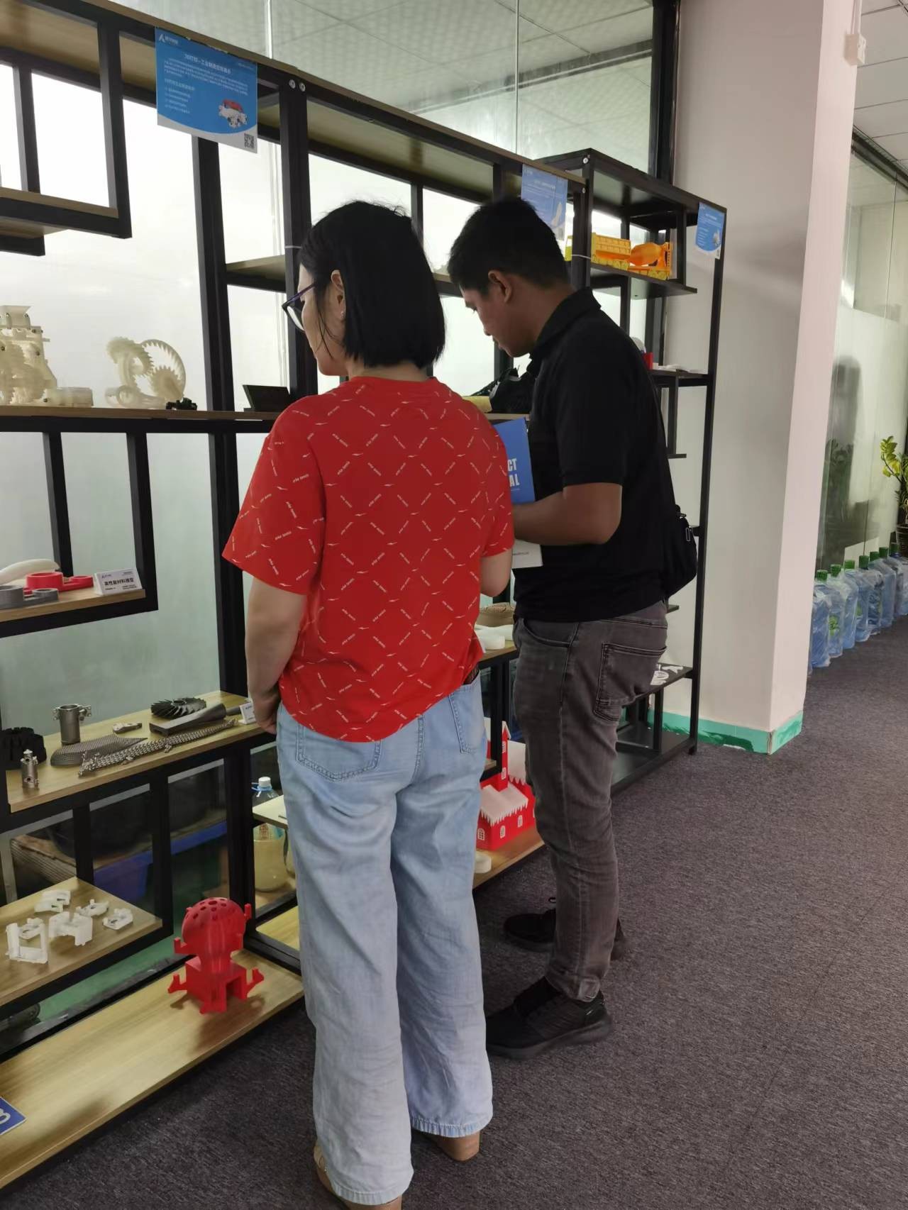 隨后,Dennielle還在極光創新海外團隊的陪同下,參觀了公司的模型展示區、SLA產品展示區、用戶服務中心和后處理車間等區域,通過走訪,Dennielle對此次探訪極光創新深圳總部之行表達了高度的肯定,他認為,此次探訪極光創新,讓他再次肯定了自身的判斷,極光創新豐富的產品線、嚴謹與創新的企業文化、不斷鉆研的研發實力,以及整個團隊的專業素養和對細節的關注讓他留下了深刻的印象。