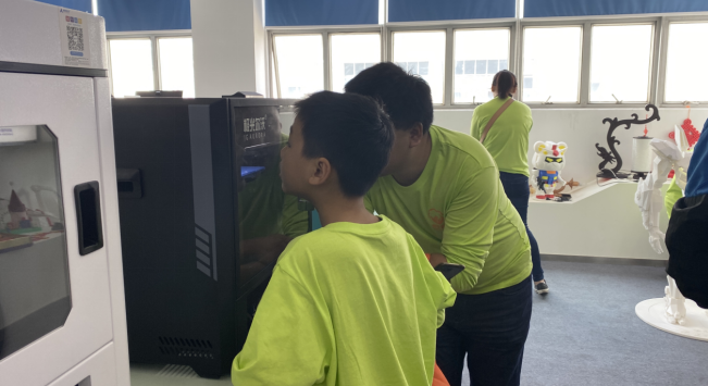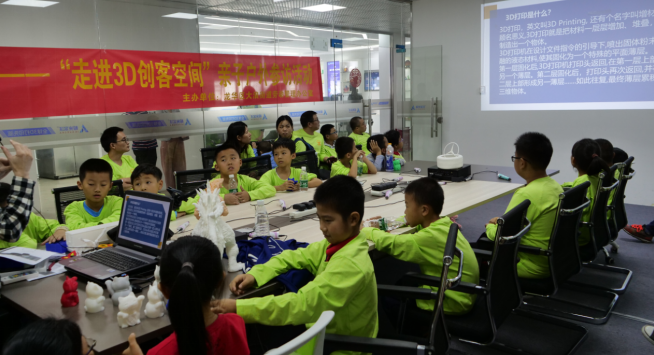 學(xué)生和家長(zhǎng)正在觀看3D打印機(jī)打印過(guò)程