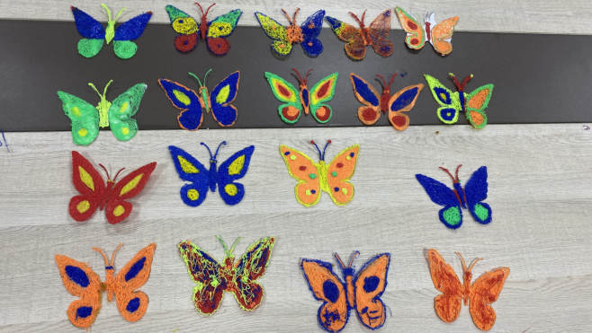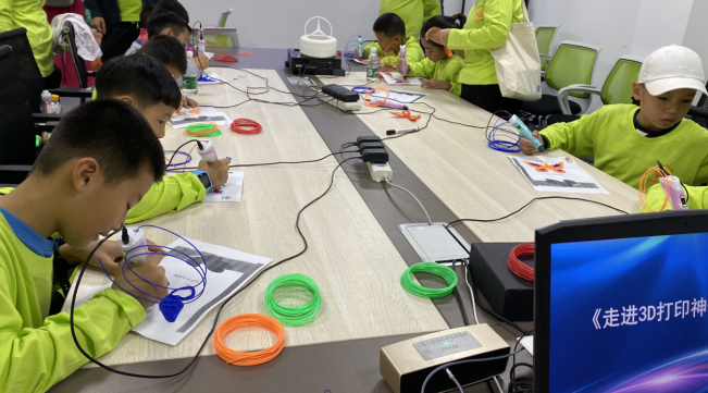 接下來(lái)的環(huán)節(jié)中,李老師帶領(lǐng)學(xué)生們進(jìn)行3D打印筆的教學(xué)。通過(guò)幾分鐘的介紹,學(xué)生們就能快速上手操作3D打印筆進(jìn)行繪畫了。小編不得不感嘆學(xué)生們的動(dòng)手能力真強(qiáng),能夠又快又好地完成作品。