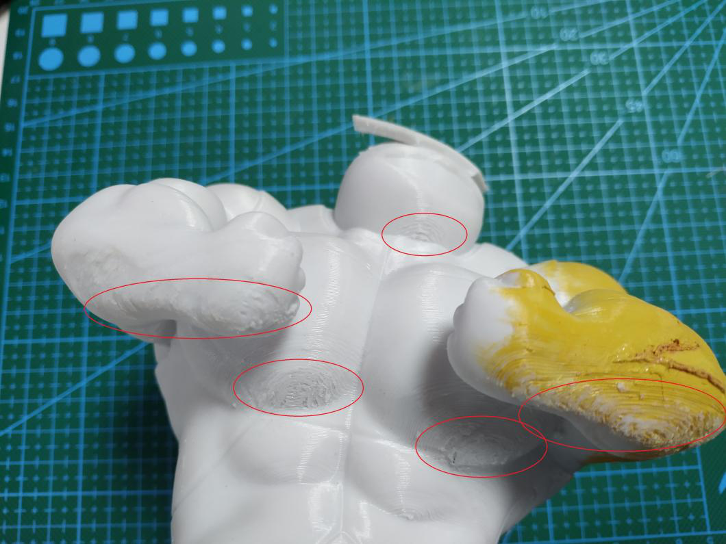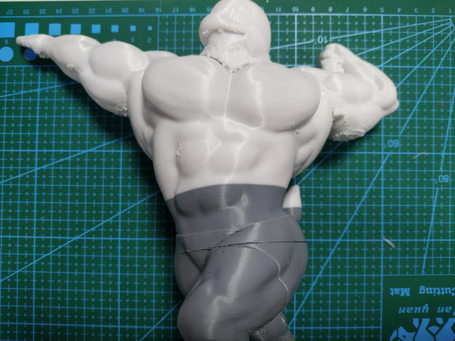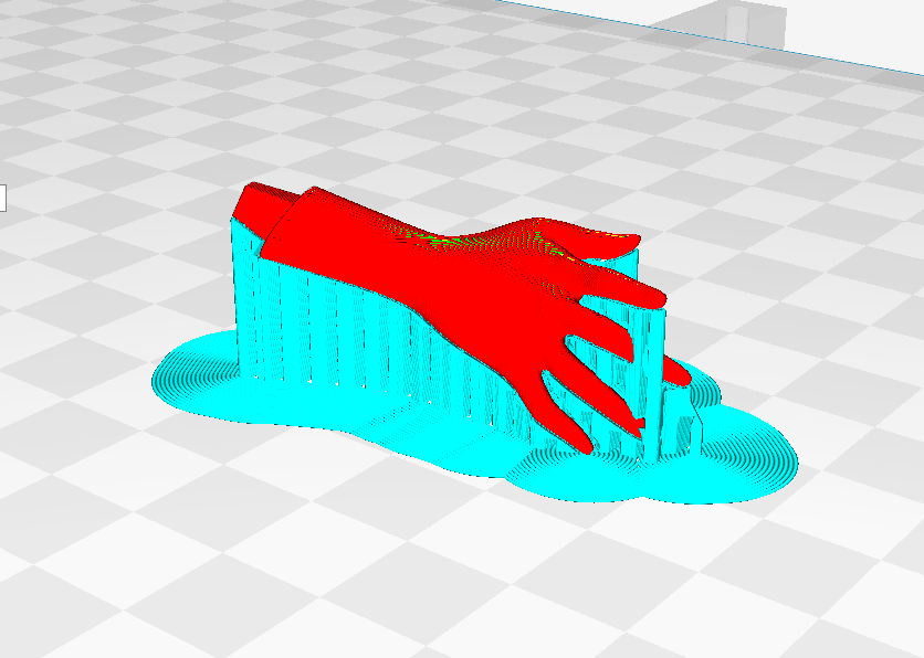 (如圖,豎直打印不僅能減少支撐面,而且還能提高整個(gè)手臂的精度效果,但是實(shí)際打印中,由于很纖細(xì)極容易失敗,只能犧牲表面效果來保證成功率。)