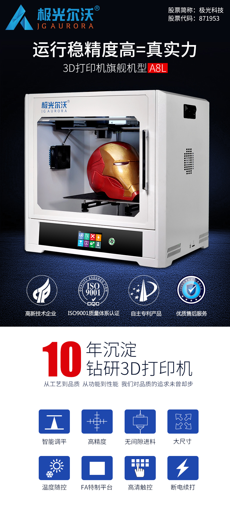 深圳市極光爾沃科技股份有限公司,中國3D打印機上市公司,由2009年英國留學創業人員發起創立的專業3D打印機“極光爾沃”
