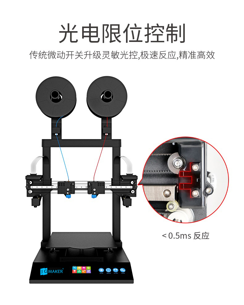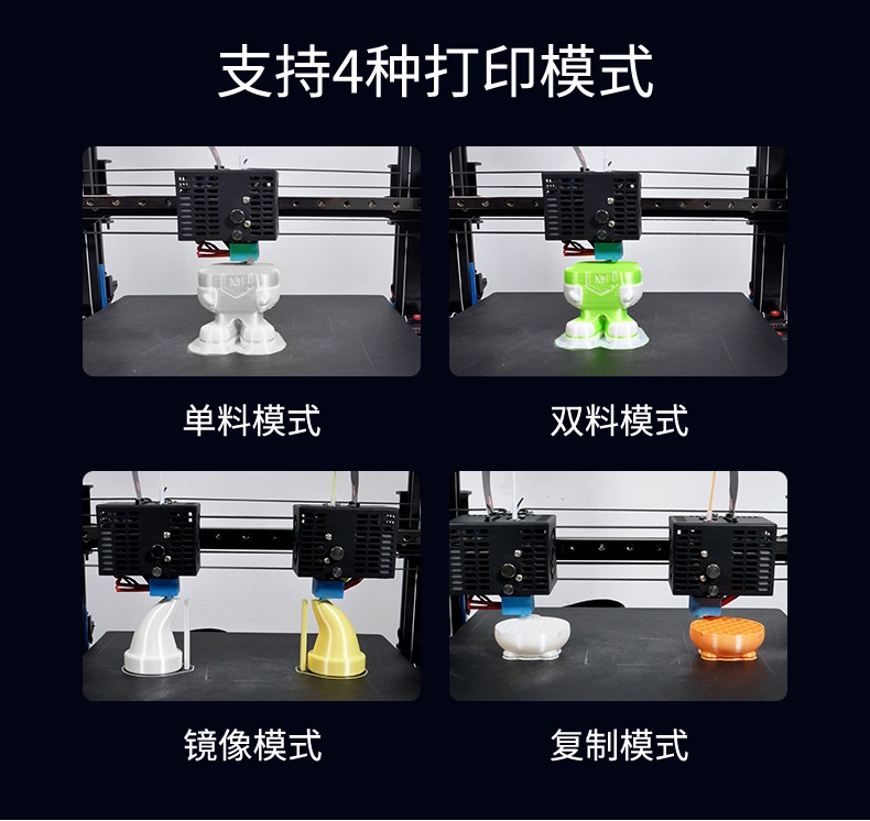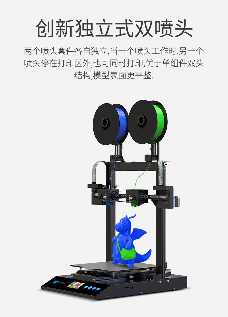 Artist-D pro雙噴頭3D打印機,采用獨立式噴頭,支持4種打印模式,采用高精度運動組件,靜音主板,支持開源。