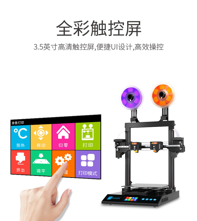 耗材傾向性:PLA/ABS/TPU/木質等控制面板:全彩觸控屏