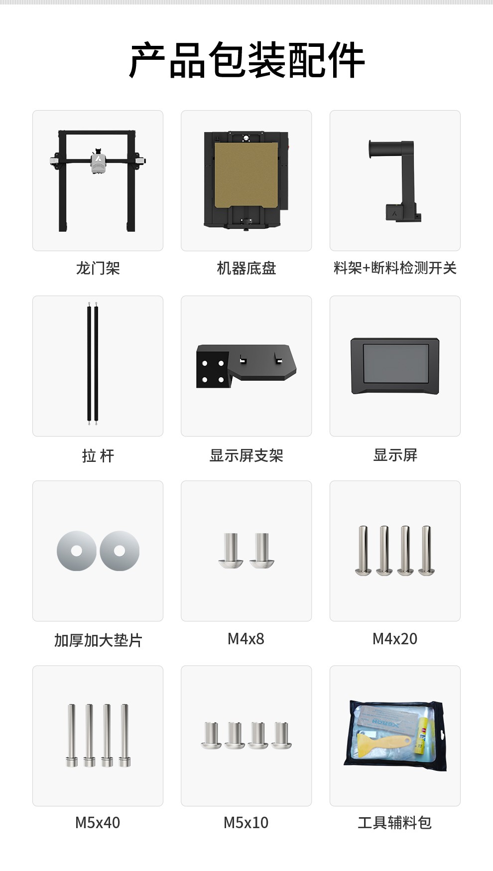 300*300*350mm最大成型空間·9.5倍放大擠出,使出料更均勻,成型更出色,搭載智能風扇控制系統,讓高達8500r/min的轉速降低噪音,還可以模型散熱更全面的同時高速打印