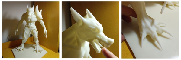 3D打印狼人模型,體積約231x157x290mm,是邵陽職業(yè)技術(shù)學(xué)院大三學(xué)生的畢業(yè)設(shè)計(jì)作品。出于對打印精度與成型效率的要求,該學(xué)生選擇極光爾沃SLA型3D打印機(jī)與白色光敏樹脂打印這款模型,整個(gè)過程只耗時(shí)20h左右,最終成品不僅精細(xì)度超過預(yù)期,而且高度還原了原始的設(shè)計(jì)效果。